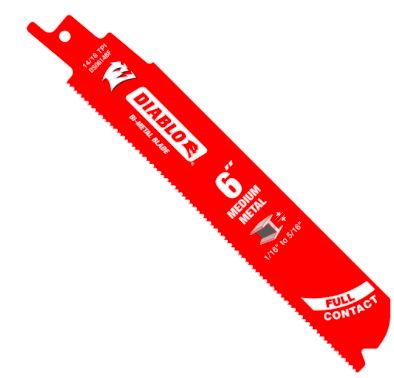 Las hojas de sierra recíproca bimetálicas de Diablo para metal mediano con diseño arqueado de contacto completo están diseñadas específicamente para un máximo rendimiento en aplicaciones de corte de metal de 1/16" a 5/16" de espesor. El diseño arqueado de contacto completo de la hoja, con filo ultraendurecido, proporciona cortes más rápidos en menos pasadas, lo que resulta en una menor acumulación de calor y una vida útil hasta 5 veces mayor en comparación con las hojas bimetálicas estándar. Su diseño de doble diente presenta una configuración de doble diente con gargantas pequeñas para una remoción de material más rápida y una mayor durabilidad. Un cuerpo de hoja sobredimensionado ayuda a estabilizar la hoja para reducir las vibraciones y vibraciones durante los cortes cruciales. El revestimiento antiadherente Perma-SHIELD de Diablo protege cada hoja de la acumulación de calor, previniendo la formación de adhesivos y la corrosión.