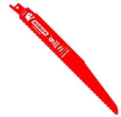 La hoja de sierra recíproca Diablo Steel Demon de 8 dientes por pulgada y punta de carburo está diseñada para cortes de metal extremos, incluyendo aleaciones de alta resistencia, hierro fundido y acero inoxidable. Su hoja de alto rendimiento ofrece una vida útil de corte hasta 20 veces mayor que la de las hojas bimetálicas estándar. Corta metales de 3/16" a 1/2" de espesor.