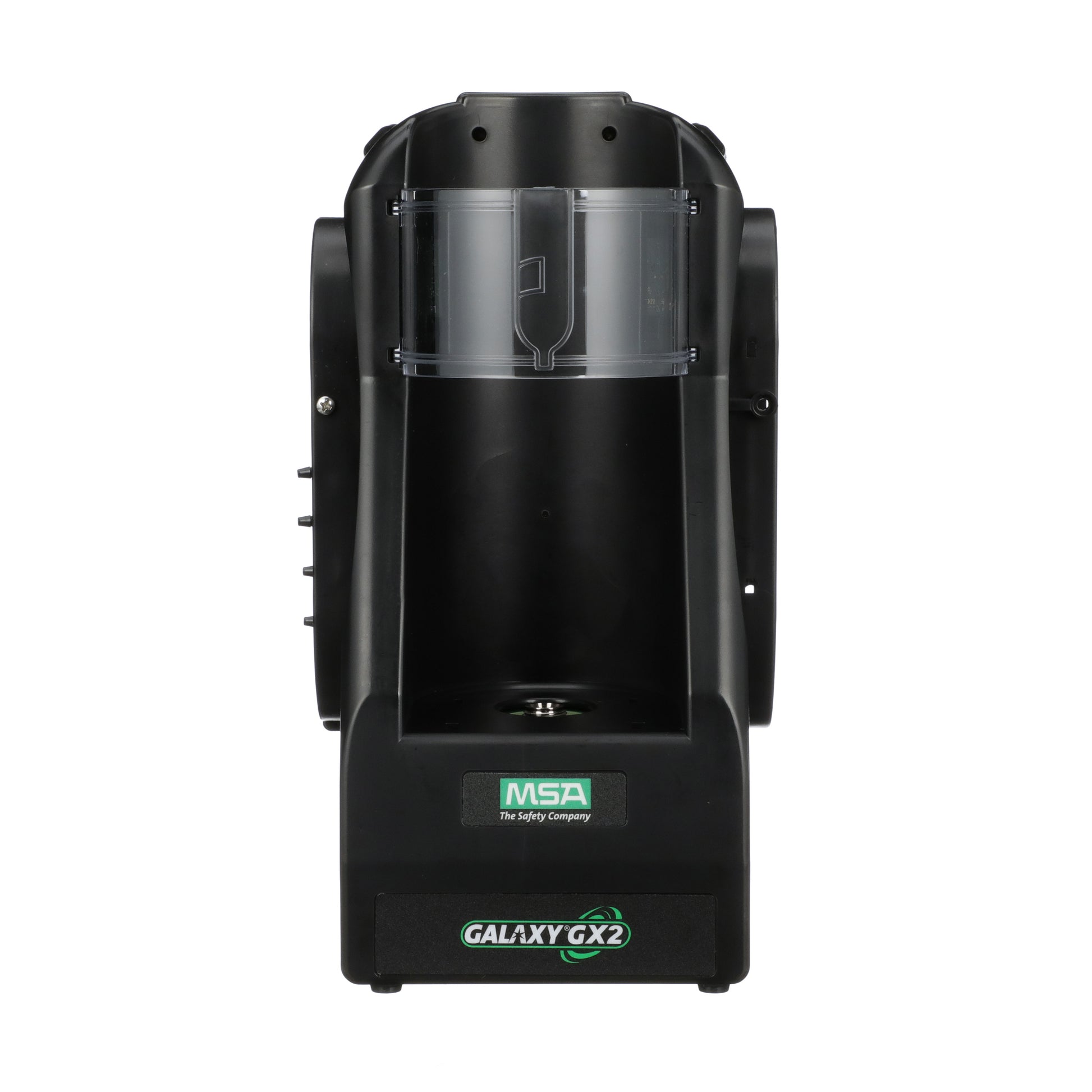 El soporte electrónico para cilindros tiene capacidad para un cilindro de gas de prueba e incluye: una banda luminosa, una etiqueta RFID y un regulador de presión interno con sensor. La banda luminosa indica la funcionalidad del cilindro de gas. La etiqueta RFID lee el cilindro de gas de prueba MSA y transmite el tipo de gas, la concentración, la fecha de caducidad, el número de lote y el número de pieza al banco de pruebas. El regulador de presión lee la presión del cilindro de gas y transmite esa información al banco de pruebas.