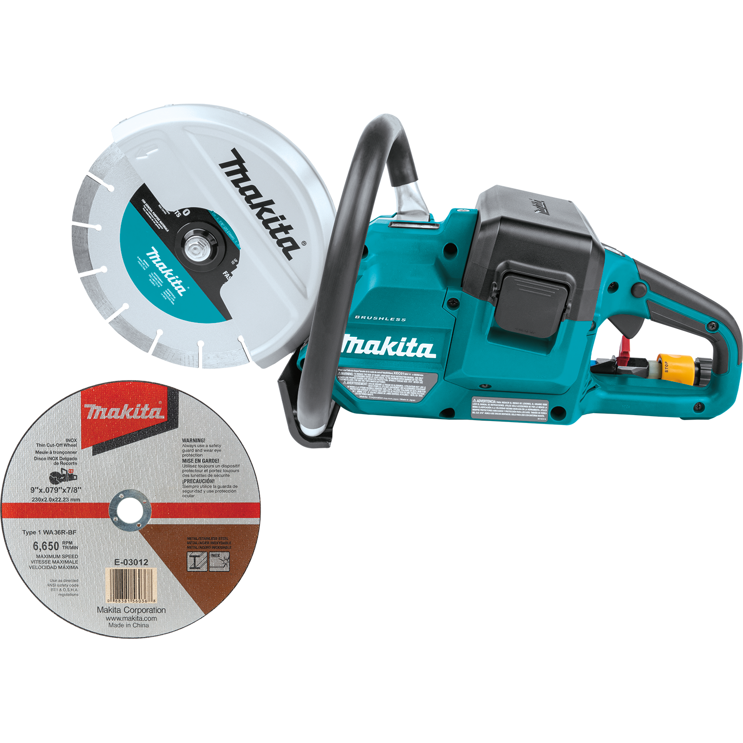 La cortadora eléctrica sin escobillas LXT de 18 V x 2, 36 V y 9" XEC01Z ofrece la potencia para cortar diversos materiales con todas las ventajas y la comodidad de un funcionamiento inalámbrico. La XEC01Z tiene una profundidad máxima de corte de 8,9 cm, lo que permite cortar losas de hormigón residenciales estándar en una sola pasada. Además de hormigón, puede cortar vigas en I, tubos de acero, varillas de refuerzo de 7,6 cm, montantes metálicos de 1,9 cm a n.° 6 de 3,8 cm de ancho y más. Las ventajas de una cortadora eléctrica inalámbrica frente a una de gasolina incluyen la ausencia de mezcla de aceite y gas, la ausencia de emisiones, el arranque manual, la ausencia de mantenimiento del motor y un peso más ligero. Esto se traduce en menor fatiga del operador, arranques instantáneos, ahorro de costes y la posibilidad de utilizar la cortadora en interiores, en espacios reducidos y a gran altura. El caudal de agua se controla mediante una perilla de ajuste. El diseño de transmisión por correa proporciona un funcionamiento más suave y con menos vibraciones. La XEC01Z cuenta con un motor sin escobillas BL especialmente diseñado que elimina las escobillas de carbón y permite que el motor funcione a menor temperatura y de forma más eficiente, prolongando así su vida útil.